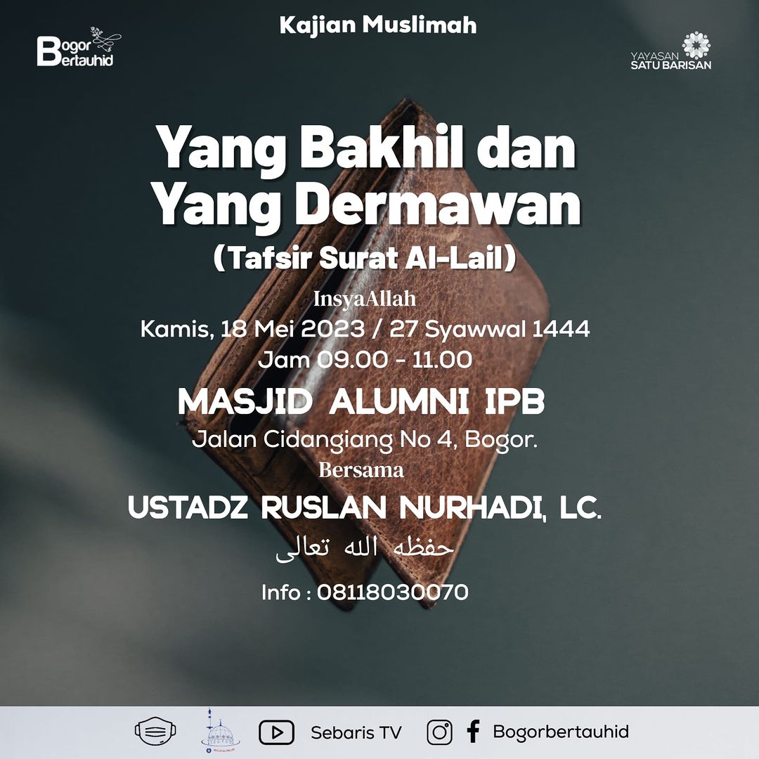Kajian kamis pagi, 18 Mei 2023 Kajian muslimah, terbuka untuk umum Bersama Ustadz Ruslan Nurhadi, Lc.